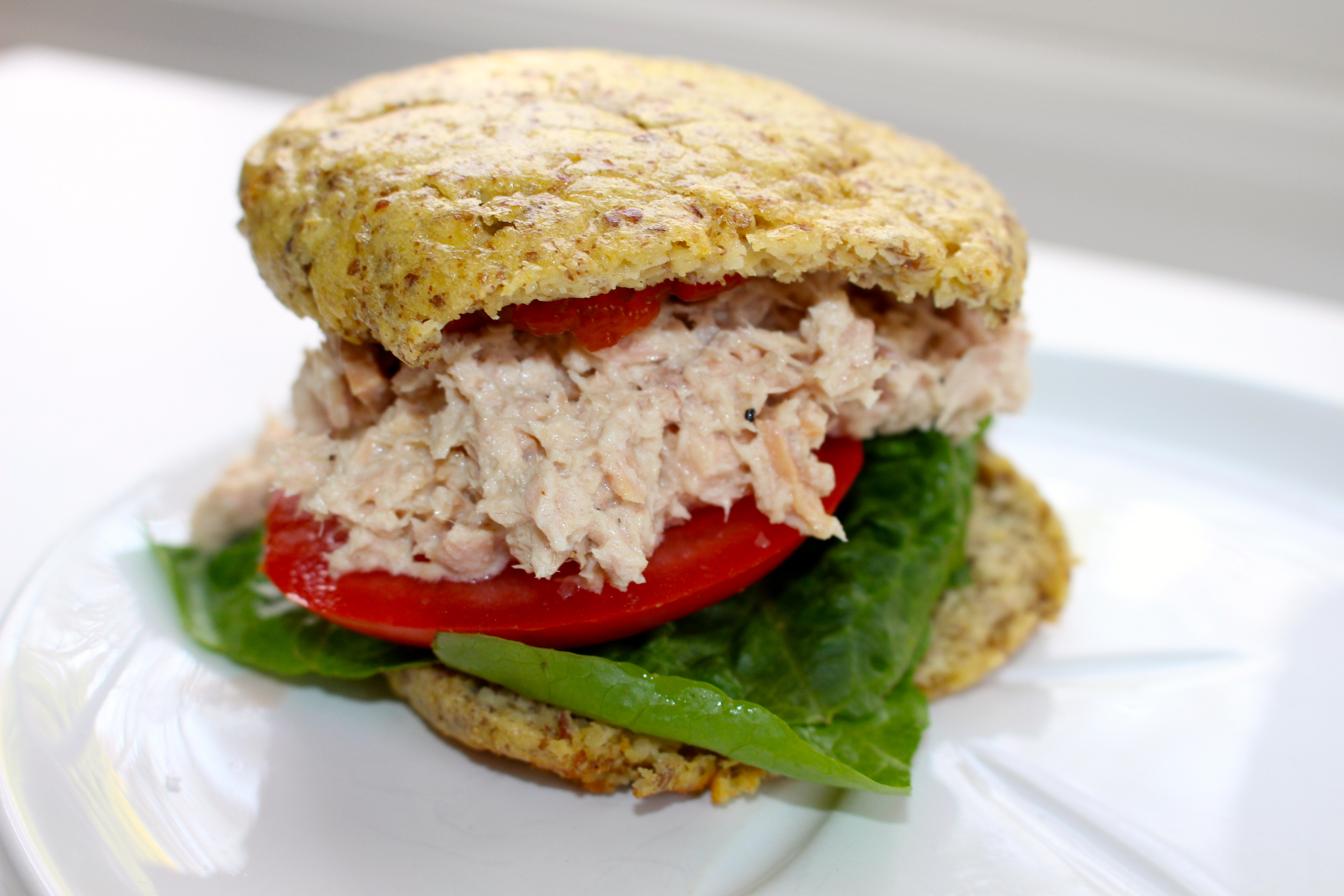 I’m a huge fan of coconut wraps as a substitute for tortillas or bread but some people don’t like the flavor. I have not had much luck in finding a gluten free or grain free bread that I really like. Plus really? $10.99 for a loaf of bread? I’ve experimented with a few recipes and came up with this one recently and I really like it! It has a very neutral taste is bread like and holds a sandwich together well. It comes out round like a roll if you make it in mini-pie tins like I used, here are some from Amazon (I can’t find the ones I used anywhere! I know they are 5 inch round). I used them today to make a delicious tuna salad sandwich using Primal Kitchens avocado mayo (yum!). I hope you like them as much as I do!!I’m a huge fan of coconut wraps as a substitute for tortillas or bread but some people don’t like the flavor. I have not had much luck in finding a gluten free or grain free bread that I really like. Plus really? $10.99 for a loaf of bread? I’ve experimented with a few recipes and came up with this one recently and I really like it! It has a very neutral taste is bread like and holds a sandwich together well. It comes out round like a roll if you make it in mini-pie tins like I used, here are some from Amazon (I can’t find the ones I used anywhere! I know they are 5 inch round). I used them today to make a delicious tuna salad sandwich using Primal Kitchens avocado mayo (yum!). I hope you like them as much as I do!!